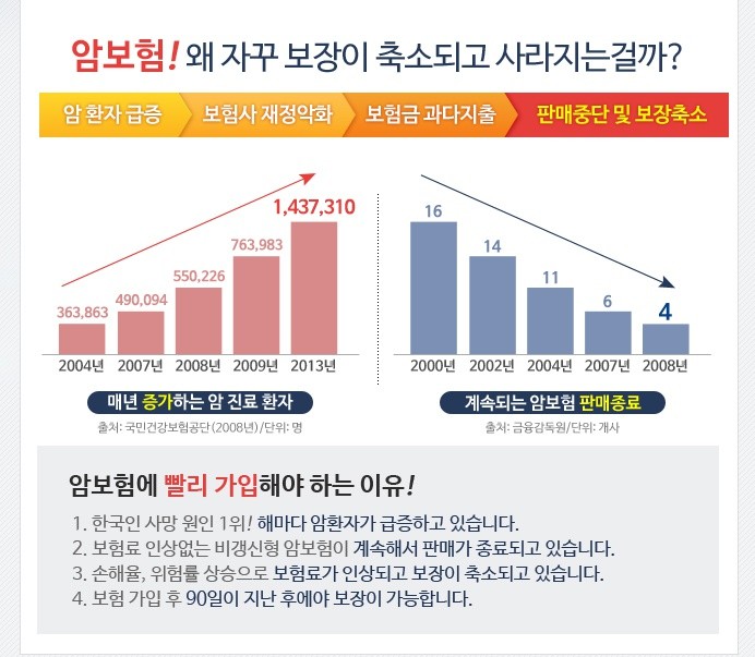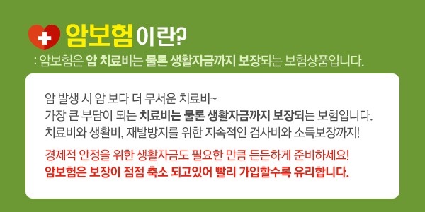 따라서 암보험은 가급적 빨리 가입하는 좋답니다.