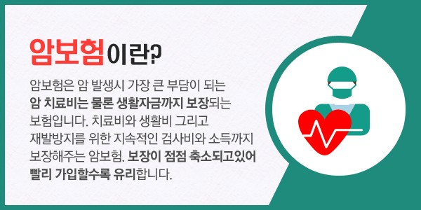수술비와 치료비, 입원비 등 암에 관한 집중적인 보장을 하는 보험입니다.